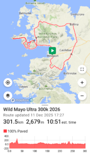 The Mayo Ultra 300: start 7am, Solo riders will depart at 3 min intervals, followed by the 2 person teams followed by Club/ buddy groups